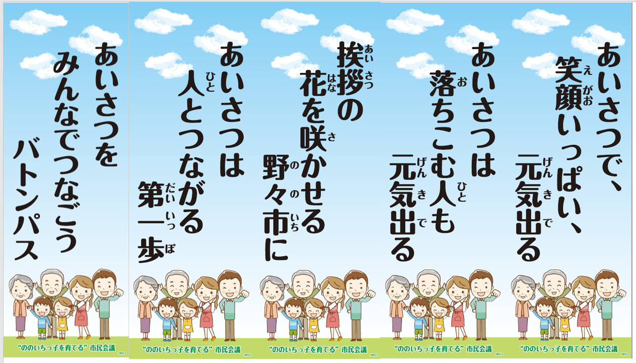| あいさつ運動 < 活動内容 < “ののいちっ子を育てる”市民会議 トップページ |