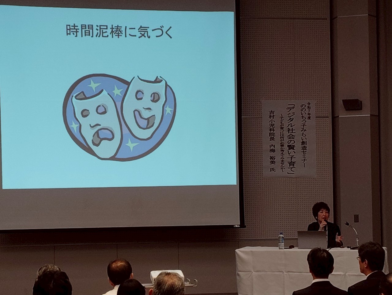 2 市民・保護者対象学習講座の開催○ののいちっ子みらい創造セミナー 令和7年度は日本小児科医会 の内海裕美医師を講師に迎え、文化会館フォルテ小ホールにて開催。「デジタル社会の賢い子育て〜子どもが育つには何が必要か考えてみませんか〜」というテーマでスマホ社会の子育てについて学習。